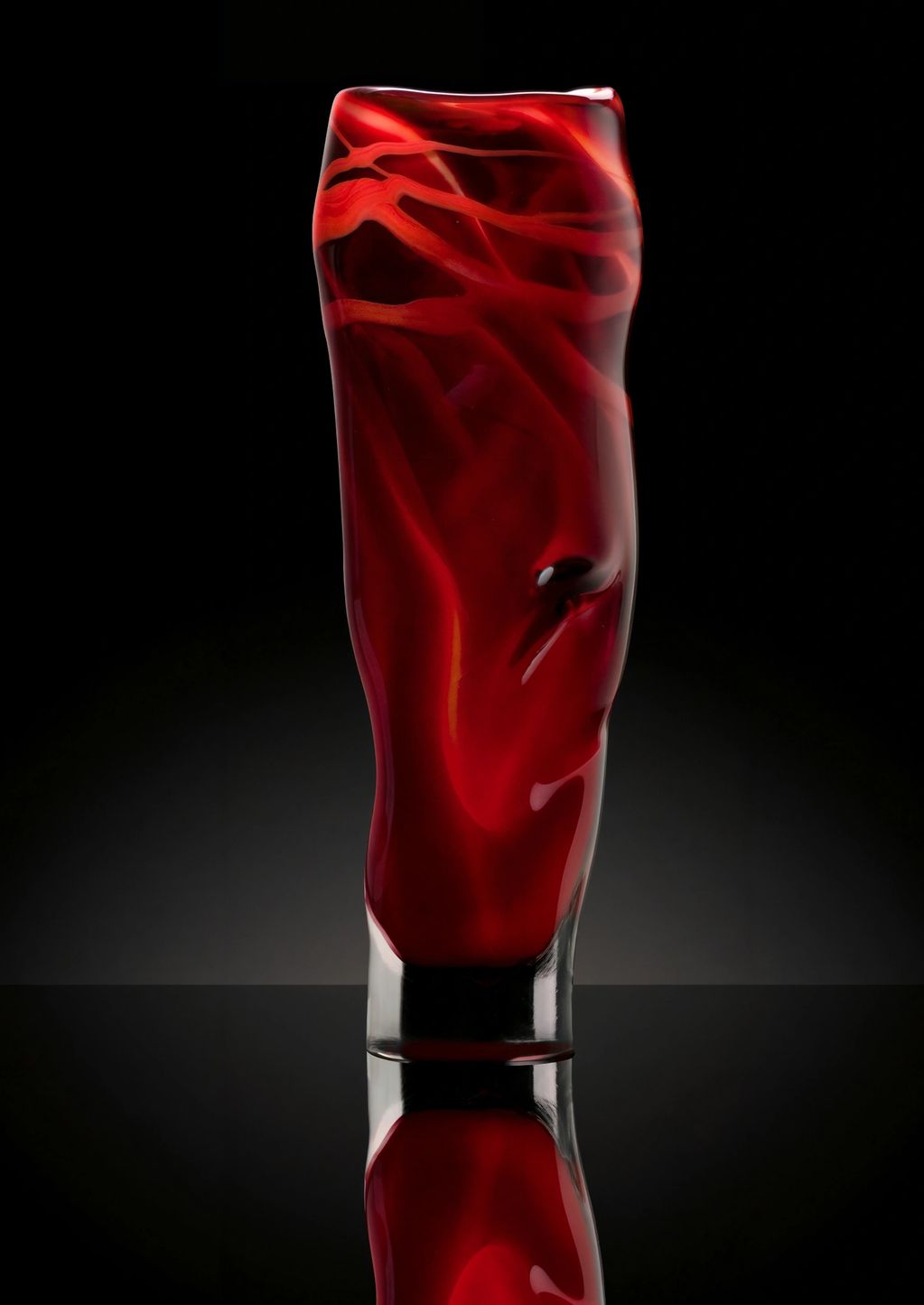 Formed through controlled heat and gravity, Ascent is shaped by downward motion within a controlled yet unpredictable environment while the glass remains fluid. The vessel’s elongated profile records this movement, drawing the material vertically before it settles into form. Gravity, air, and temperature guide the final structure, translating forces associated with water, wind, and sky into a